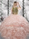 Peach Zipper Scoop Beading and Ruffles Ball Gown Prom Dress Organza Sleeveless