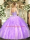 Perfect Beading and Ruffles Quinceanera Dress Lavender Lace Up Sleeveless Floor Length