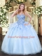 Pretty Sweetheart Sleeveless Ball Gown Prom Dress Floor Length Appliques Light Blue Organza