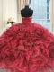 Romantic Floor Length Lace Up Quinceanera Gown Wine Red for Military Ball and Sweet 16 and Quinceanera with Appliques and Ruffles