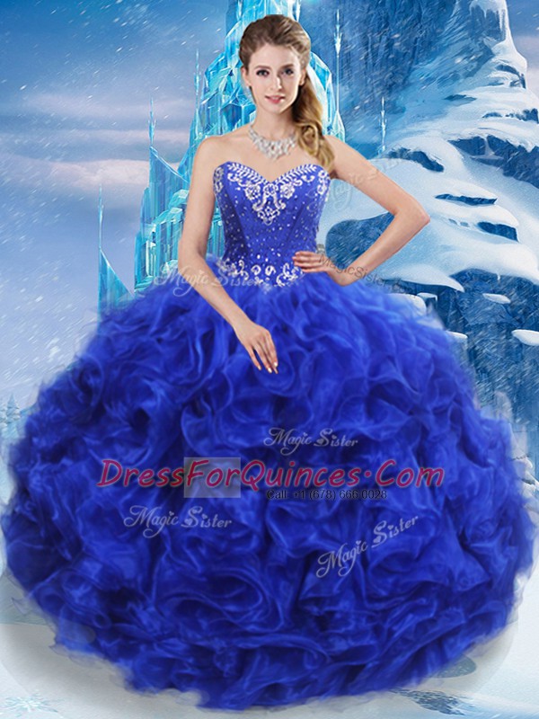 Royal Blue Lace Up Quince Ball Gowns Beading Sleeveless Floor Length