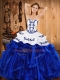 Satin and Organza Strapless Sleeveless Lace Up Embroidery and Ruffles Vestidos de Quinceanera in Royal Blue