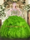 Scoop Sleeveless Vestidos de Quinceanera Floor Length Beading and Ruffles Green Organza