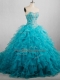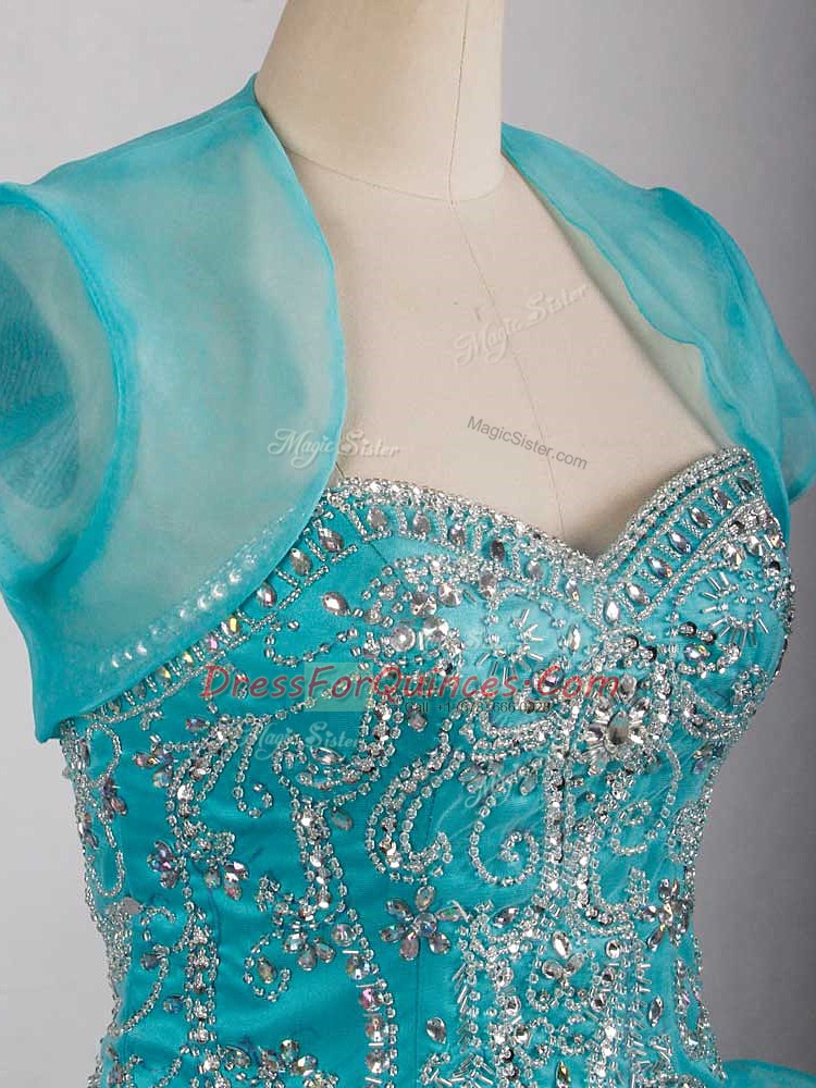Shining Aqua Blue Sweetheart Neckline Beading and Ruffles Sweet 16 Dresses Sleeveless Lace Up