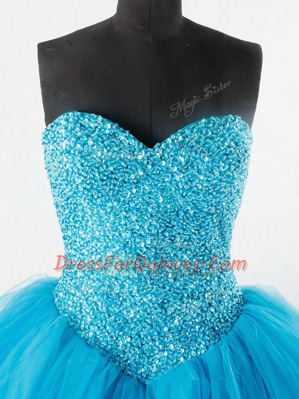 Sleeveless Floor Length Beading Lace Up Quinceanera Dresses with Baby Blue