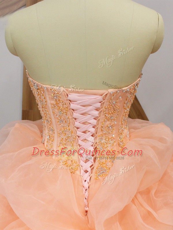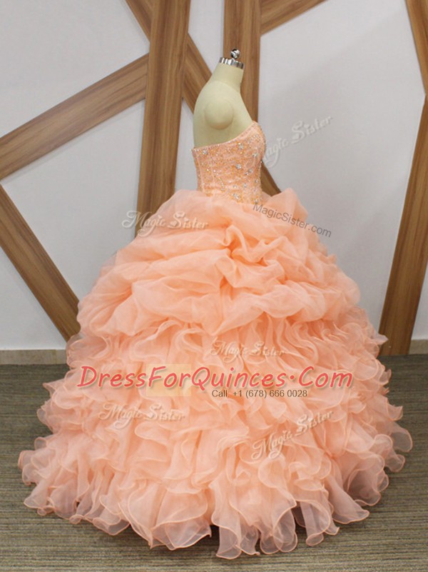 Sleeveless Sweep Train Beading and Ruffles and Pick Ups Lace Up 15 Quinceanera Dress