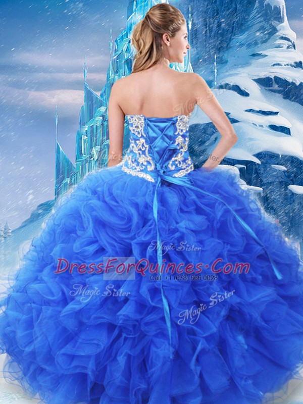 Smart Sweetheart Sleeveless Vestidos de Quinceanera Floor Length Beading and Ruffles Blue Organza