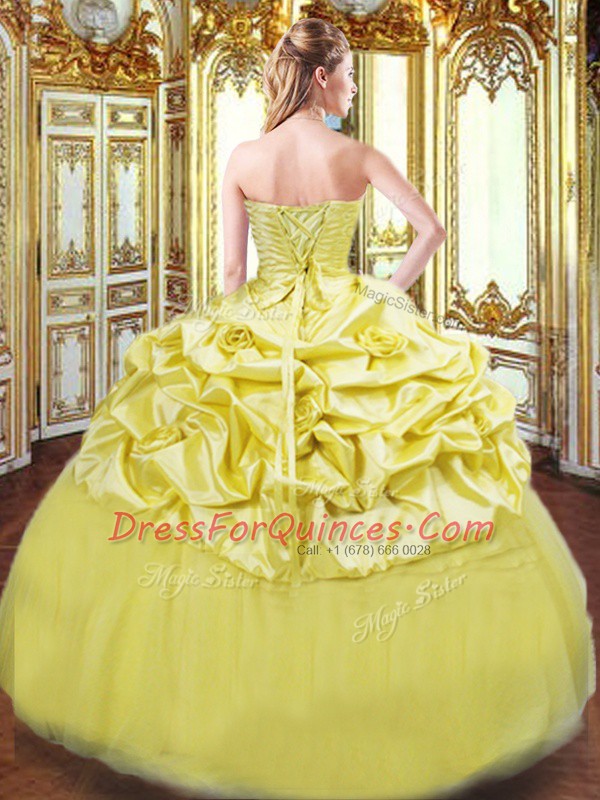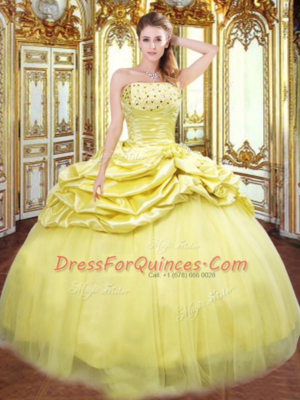Sophisticated Gold Sleeveless Floor Length Beading and Pick Ups Lace Up Quinceanera Dress
