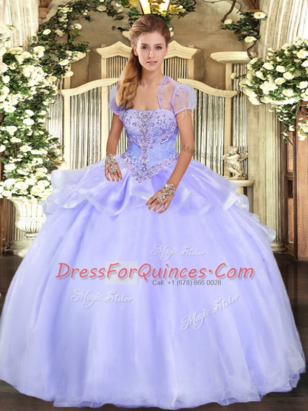 Stunning Floor Length Ball Gowns Sleeveless Lavender 15 Quinceanera Dress Lace Up