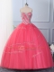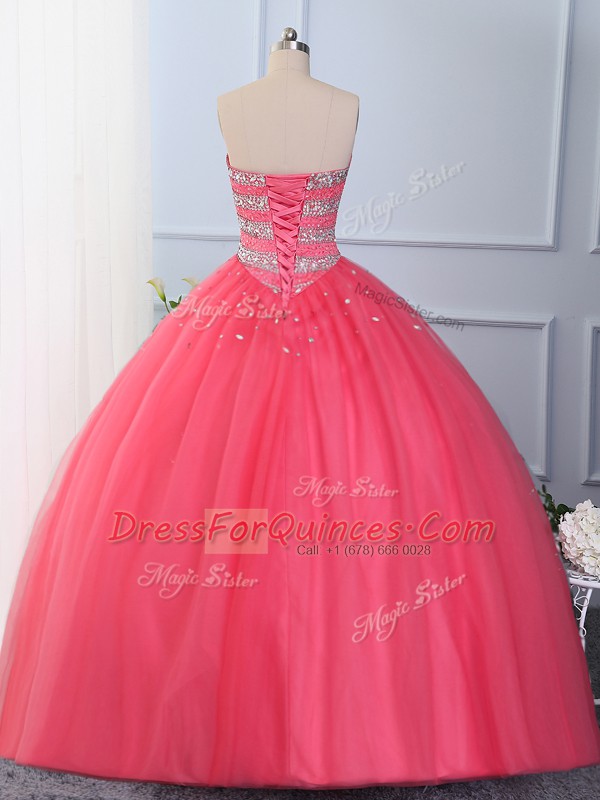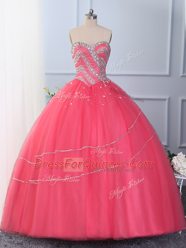 Sumptuous Floor Length Lace Up Sweet 16 Quinceanera Dress Hot Pink for Wedding Party with Beading