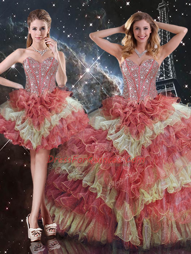 Sweetheart Sleeveless Organza Quinceanera Dress Beading and Ruffled Layers Lace Up