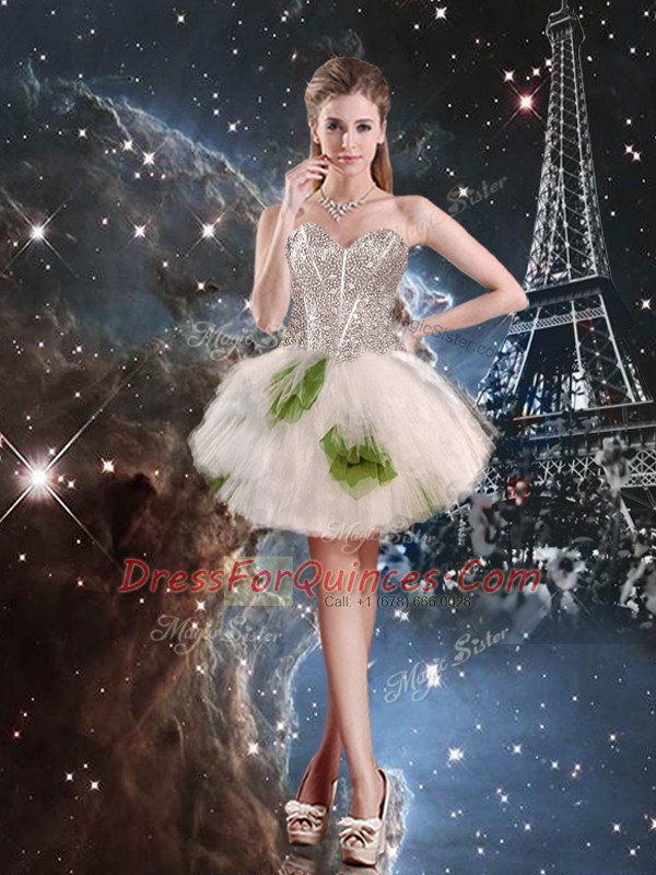 Three Pieces Quinceanera Dress White Sweetheart Tulle Sleeveless Floor Length Lace Up