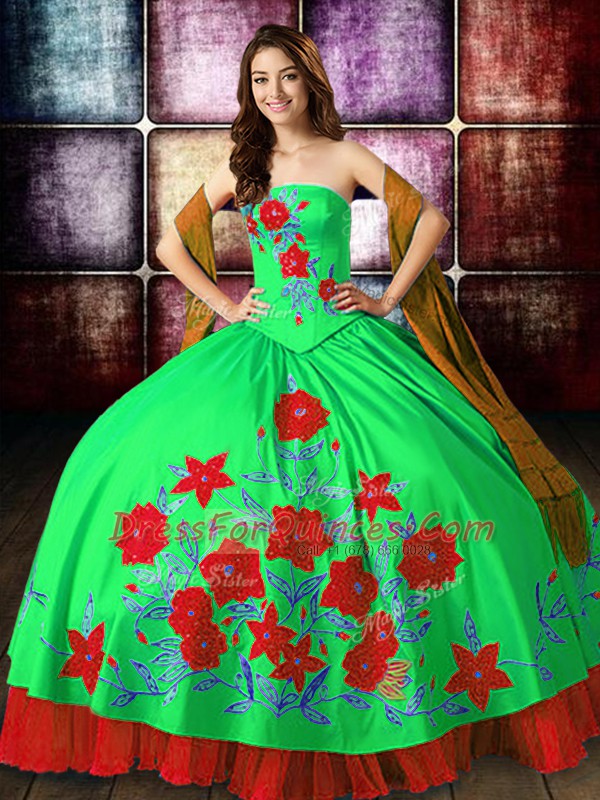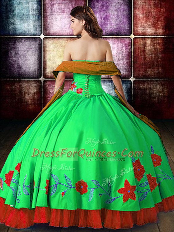 Traditional Multi-color Ball Gowns Embroidery Sweet 16 Quinceanera Dress Lace Up Satin Sleeveless Floor Length