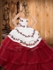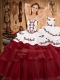 Tulle Strapless Sleeveless Sweep Train Lace Up Embroidery and Ruffled Layers Sweet 16 Dresses in Wine Red