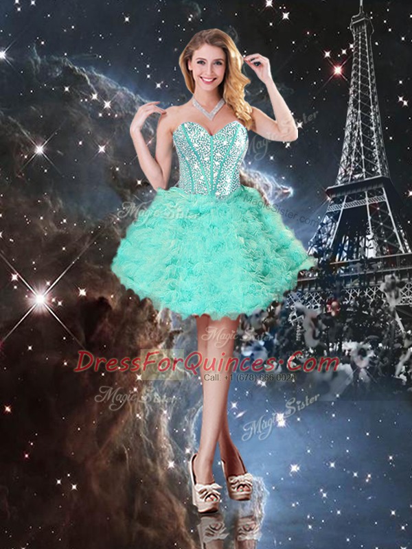 Turquoise Ball Gowns Beading and Ruffled Layers Sweet 16 Dresses Lace Up Organza Sleeveless Floor Length
