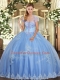 Unique Light Blue Lace Up Ball Gown Prom Dress Beading and Appliques Sleeveless Floor Length