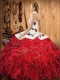 Vintage White And Red 15th Birthday Dress Military Ball and Sweet 16 and Quinceanera with Embroidery and Ruffles Halter Top Sleeveless Lace Up