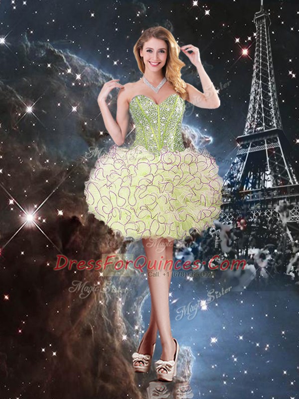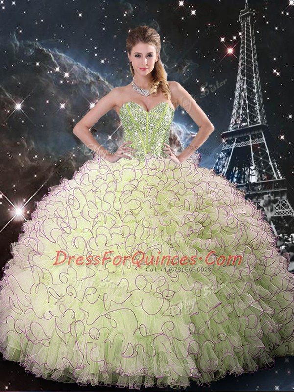Yellow Green Quinceanera Gown Military Ball and Sweet 16 and Quinceanera with Beading and Ruffles Sweetheart Sleeveless Lace Up