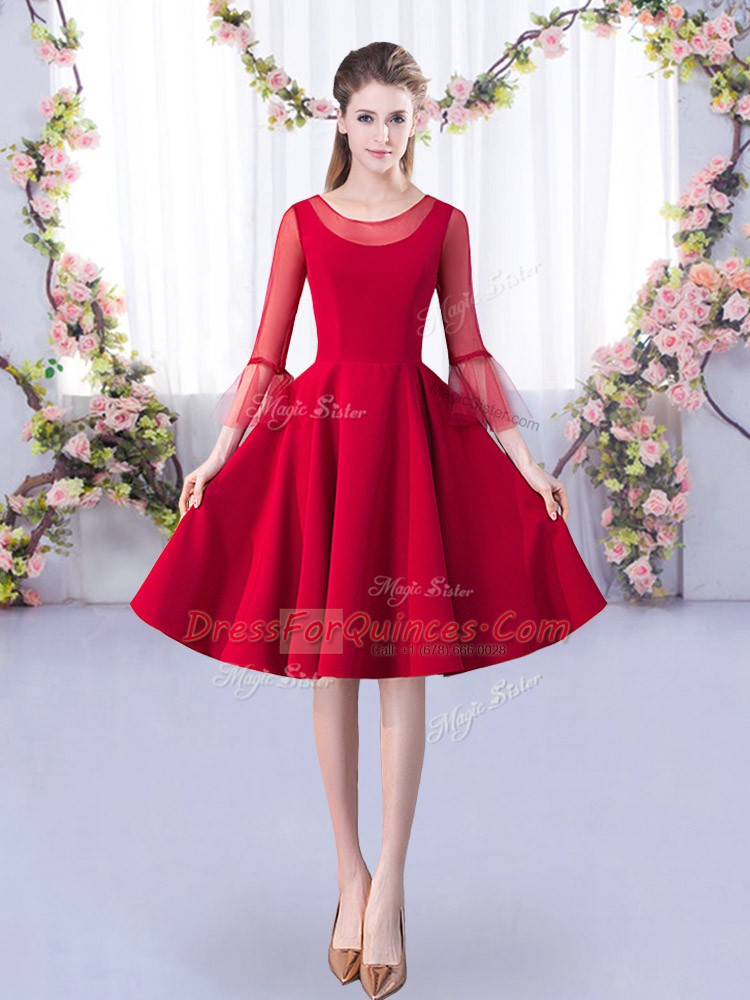 Dramatic Red Satin Zipper Scoop 3 4 Length Sleeve Knee Length Court Dresses for Sweet 16 Ruching