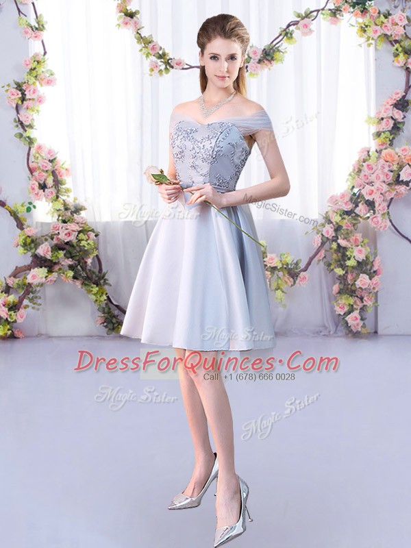 Knee Length A-line Sleeveless Silver Vestidos de Damas Lace Up