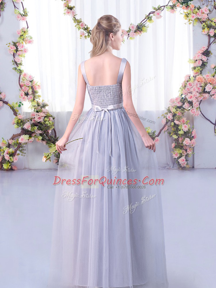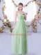 New Style Apple Green Sleeveless Floor Length Lace and Belt Side Zipper Dama Dress