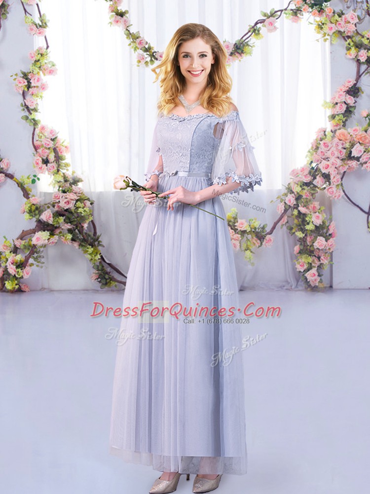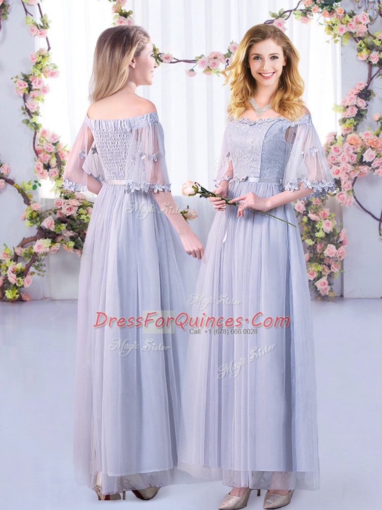 Off The Shoulder Half Sleeves Tulle Quinceanera Court Dresses Lace and Belt Side Zipper