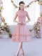 Pink High-neck Zipper Lace Damas Dress Cap Sleeves