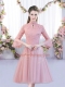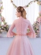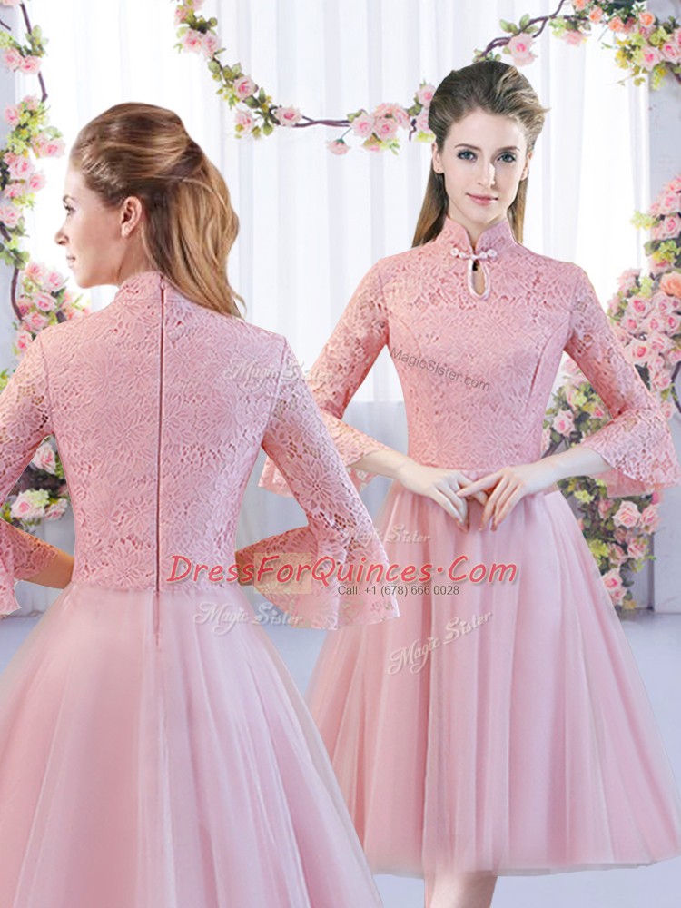 Pink High-neck Zipper Lace Quinceanera Dama Dress 3 4 Length Sleeve
