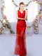 Sleeveless Floor Length Lace Lace Up Quinceanera Court Dresses with Red