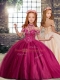Enchanting Fuchsia Sleeveless Floor Length Beading Lace Up Little Girls Pageant Dress