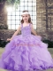 Fashion Lavender Lace Up Little Girls Pageant Dress Beading and Ruffles Sleeveless Floor Length