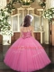 Glorious Halter Top Sleeveless Lace Up Kids Pageant Dress Peach Tulle