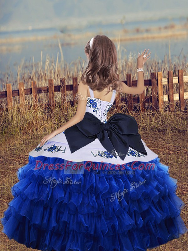 Green Lace Up Pageant Gowns For Girls Embroidery and Ruffled Layers Sleeveless Floor Length