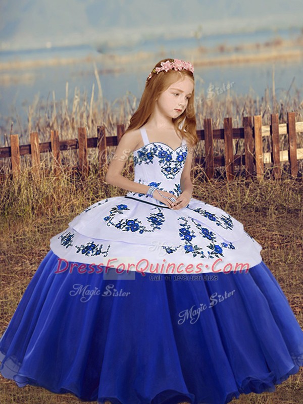 High Class Royal Blue Sleeveless Organza Lace Up Kids Pageant Dress for Party and Wedding Party