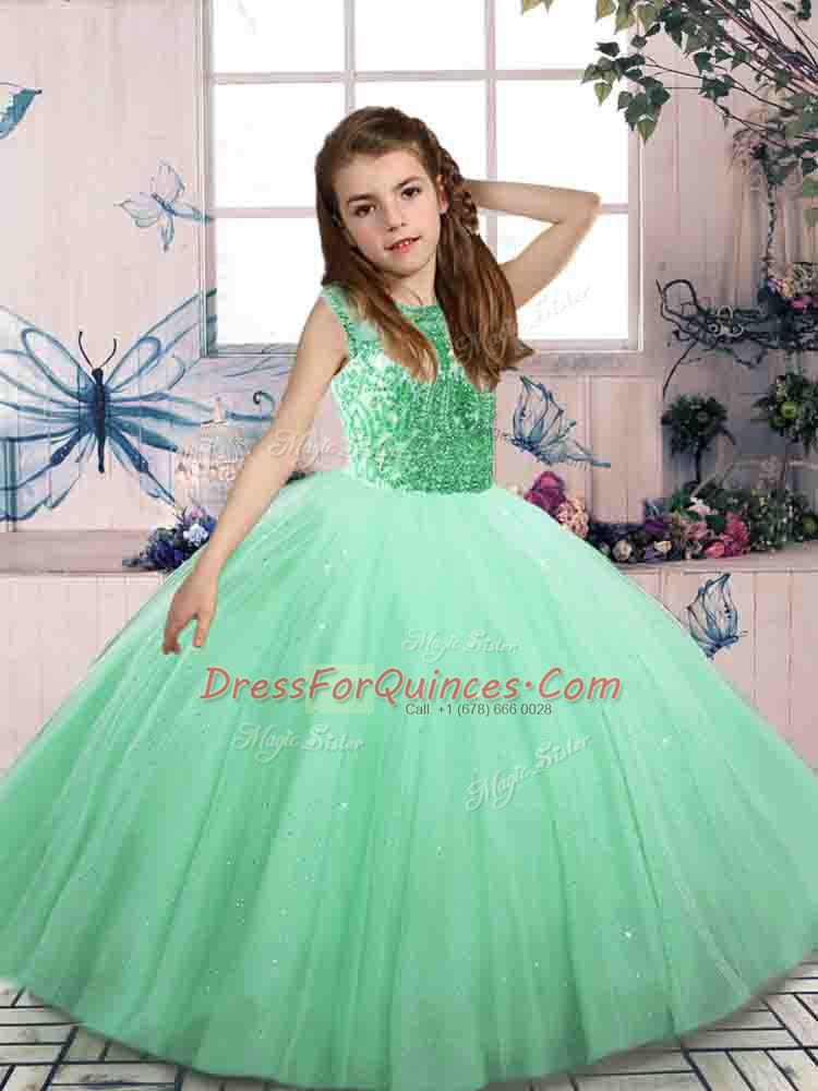 High End Mini Length Lace Up Little Girls Pageant Gowns Apple Green for Party and Wedding Party with Beading