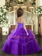 Hot Pink Tulle Lace Up Kids Formal Wear Sleeveless Floor Length Ruffled Layers