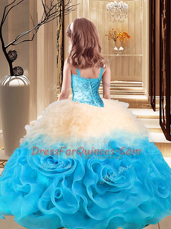 Multi-color Ball Gowns Beading Girls Pageant Dresses Lace Up Fabric With Rolling Flowers Sleeveless Floor Length