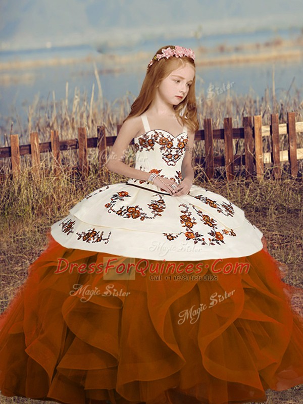 New Style Floor Length Ball Gowns Sleeveless Rust Red Kids Pageant Dress Lace Up