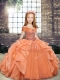 Orange Organza Lace Up Straps Sleeveless Floor Length Child Pageant Dress Beading and Ruffles