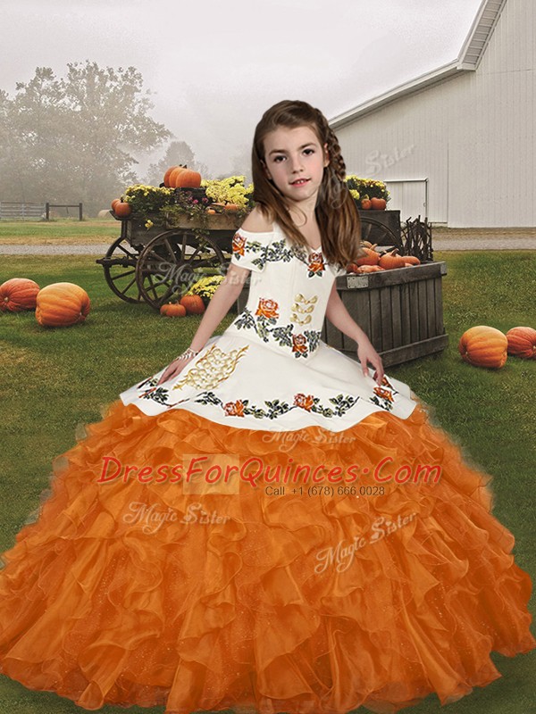 Orange Sleeveless Organza Lace Up Little Girls Pageant Gowns for Party and Military Ball and Wedding Party
