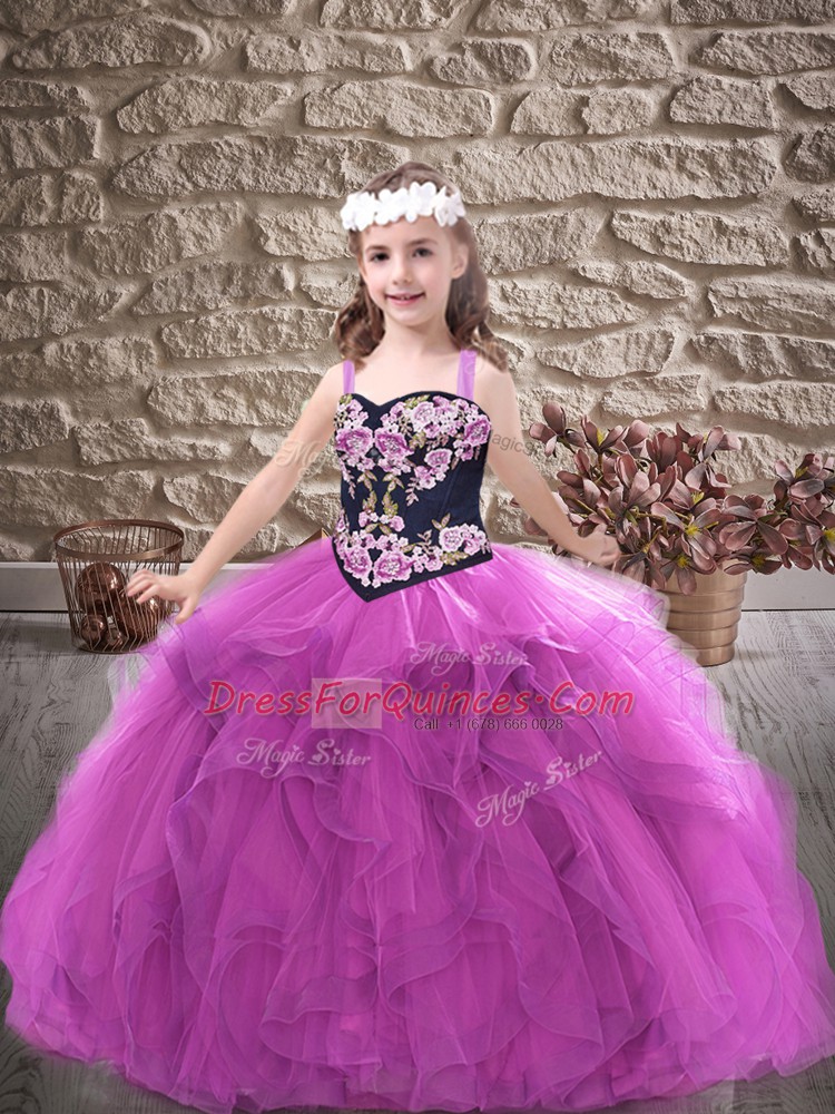 Purple Lace Up Child Pageant Dress Embroidery and Ruffles Sleeveless Floor Length