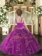 Purple Lace Up Little Girls Pageant Gowns Ruffles Sleeveless Floor Length