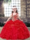 Red Straps Lace Up Beading and Ruffles Little Girls Pageant Gowns Sleeveless