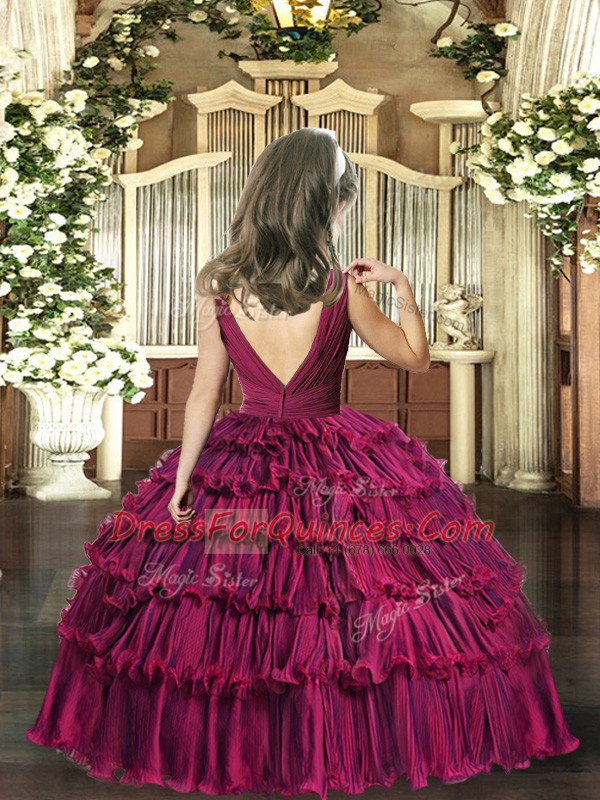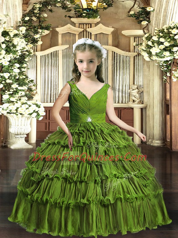 Sleeveless Beading and Ruffled Layers Backless Girls Pageant Dresses