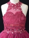 Superior Mini Length Hot Pink Girls Pageant Dresses Organza Sleeveless Beading and Lace