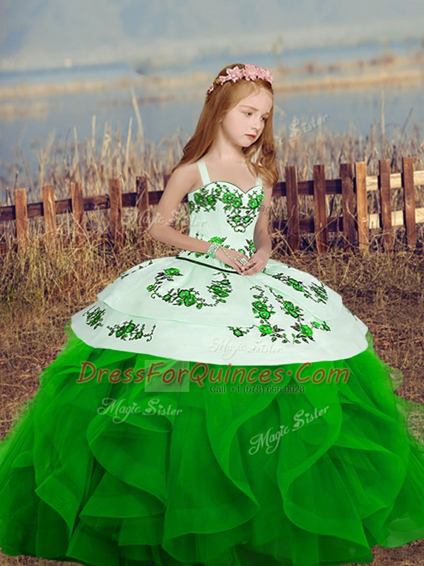 Trendy Straps Sleeveless Organza Girls Pageant Dresses Embroidery and Ruffles Lace Up