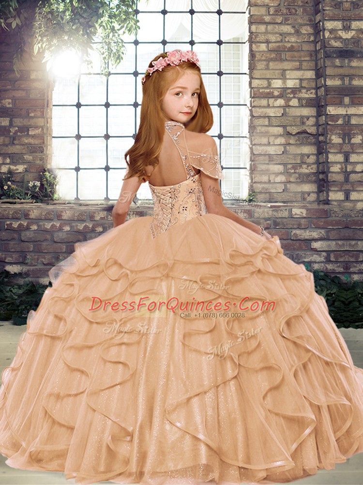 Tulle Sleeveless Floor Length Little Girls Pageant Gowns and Beading and Ruffles