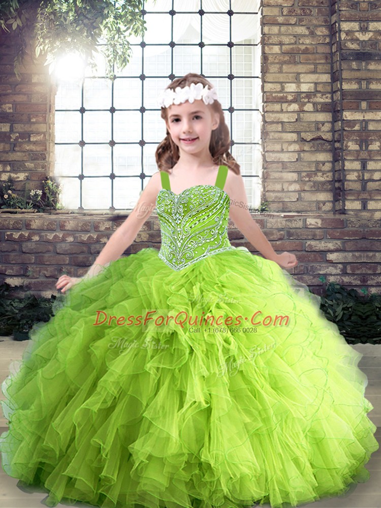 Tulle Straps Sleeveless Lace Up Beading and Ruffles Pageant Gowns For Girls in