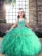 Turquoise Ball Gowns Tulle Straps Sleeveless Beading and Ruffles Floor Length Lace Up Kids Pageant Dress
