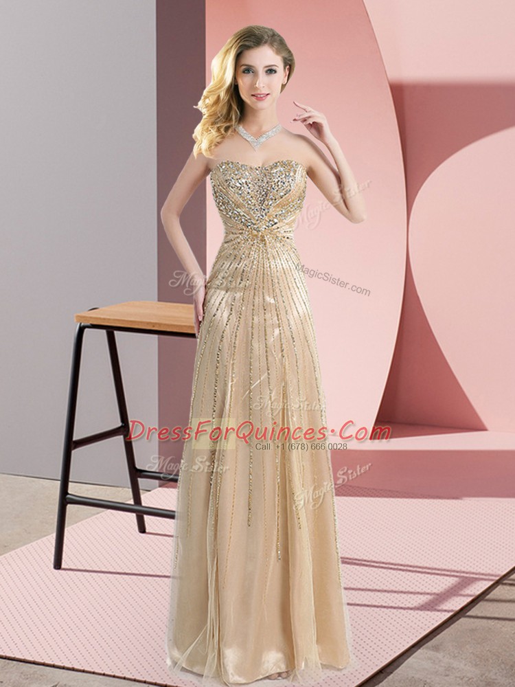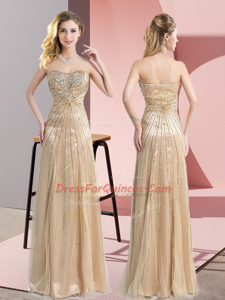 Column/Sheath Homecoming Dress Champagne Sweetheart Tulle Sleeveless Floor Length Zipper